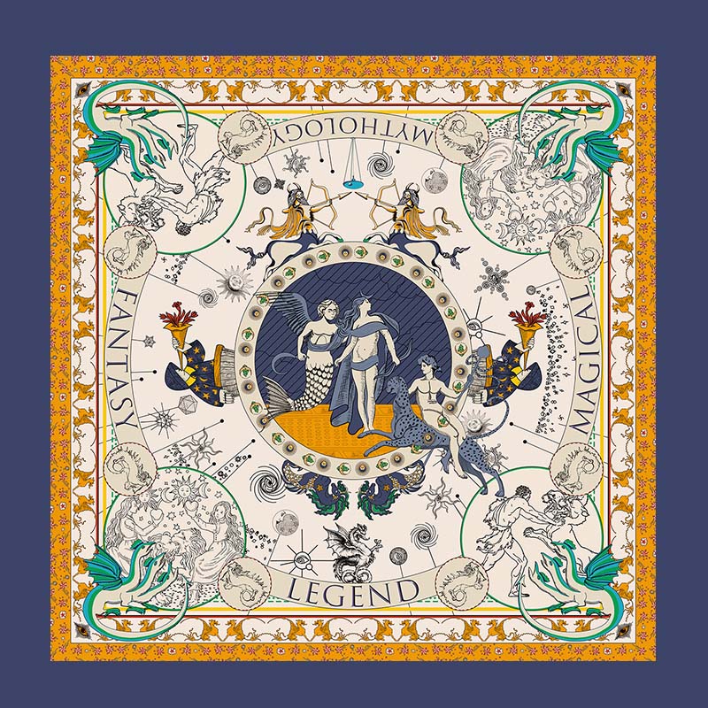 Le design de ce cabas est une immersion dans un univers de légendes et de mythes anciens. Au centre, des figures mythologiques entourées de sirènes et de créatures fantastiques créent une scène épique et enchanteresse.