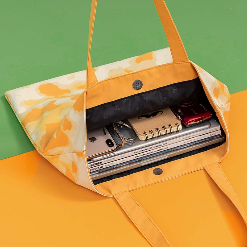 Notre cabas est doté d'un grand compartiment de rangement, parfaitement dimensionnés pour accueillir un ordinateur, une tablette, des lunettes, des clés et tous vos accessoires du quotidien.