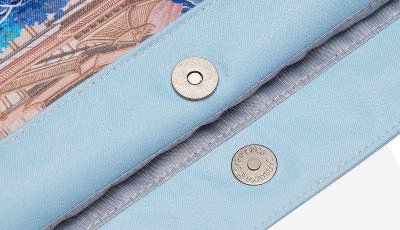 Pour garantir une sécurité optimale de vos effets personnels, notre cabas est doté d'un bouton de pression métallique et aimanté.