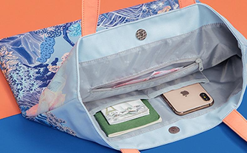 Nos cabas disposent de plusieurs poches internes pour sécuriser vos objets précieux (Passeport, Téléphones, portefeuille, etc.)