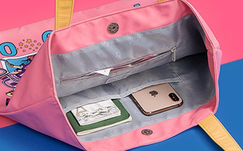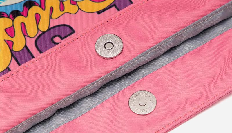 Imprimé avec un design vibrant et détaillé, ce sac met en scène des personnages amusants et des éléments colorés, créant une ambiance ludique et dynamique. Ce sac est bien plus qu'un simple accessoire – c'est une déclaration artistique et une invitation à revivre l'énergie et la fantaisie de cette décennie emblématique.