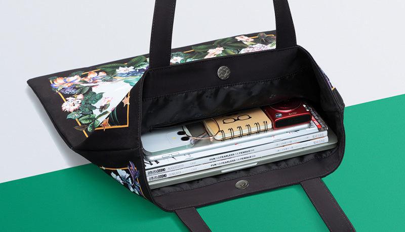Notre cabas est doté d'un grand compartiment de rangement, parfaitement dimensionnés pour accueillir un ordinateur, une tablette, des lunettes, des clés et tous vos accessoires du quotidien.