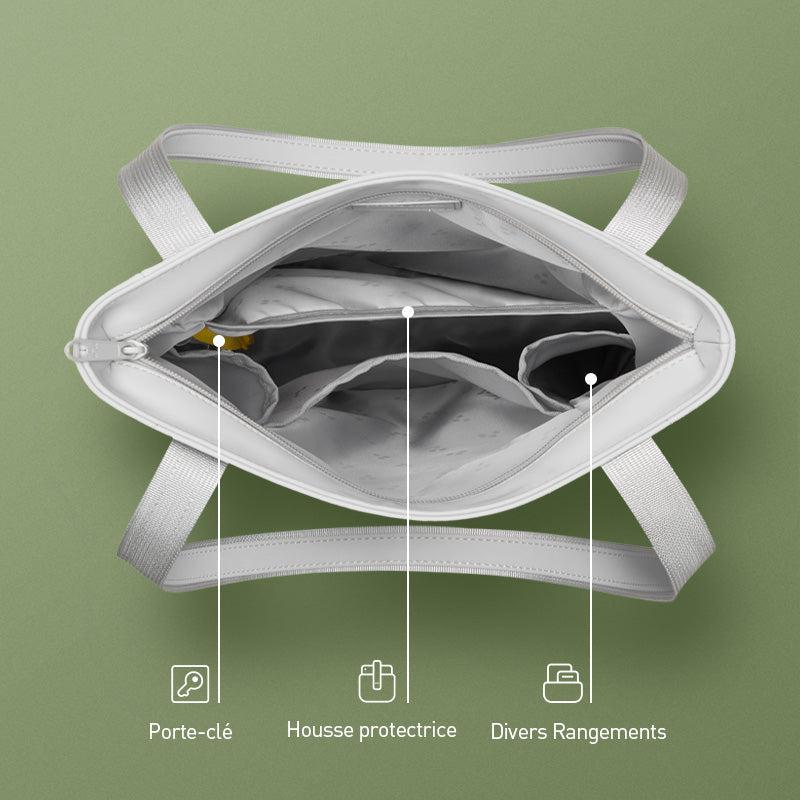 Un porte-clé intégré et une housse protectrice ajoutent une touche de praticité supplémentaire, faisant de ce cabas l'accessoire idéal pour une organisation sans effort.