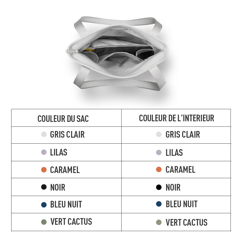 Bleu Nuit, Caramel, Gris Clair, Lilas, Noir, Vert Cactus.