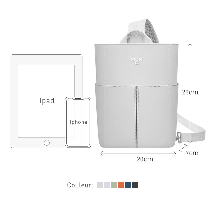 Le MaH Line est conçu pour offrir un rangement intelligent et pratique. Avec ses divers compartiments internes et externes, vous pouvez facilement organiser vos essentiels du quotidien. Que ce soit pour votre tablette, votre téléphone, etc... ce sac offre l'espace nécessaire tout en garantissant un accès facile.