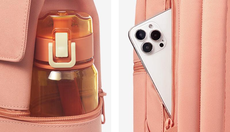De plus, il est doté d'une poche pour bouteille d'eau (500 ml) pour vous aider à rester hydraté. Cette poche peut également servir à ranger un parapluie les jours de pluie, combinant sécurité et praticité en un seul sac.