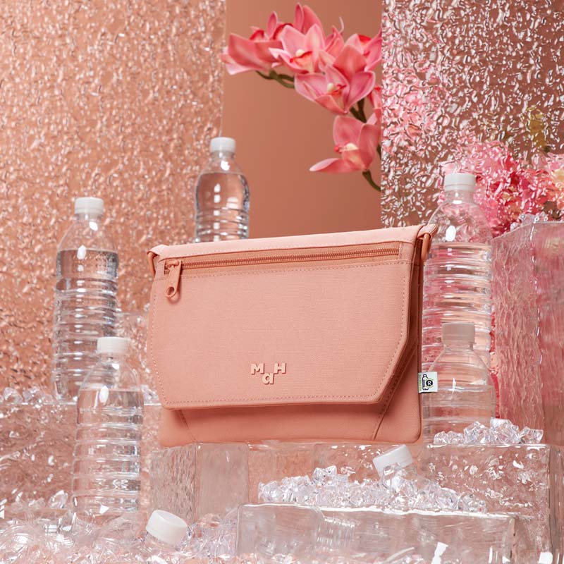 Nos sacs MaH Rose Glacier sont fabriqués à partir de bouteilles en plastique recyclées. Ce processus écologique transforme les bouteilles usagées en tissus durables, permettant de créer des sacs élégants tout en réduisant notre impact environnemental.