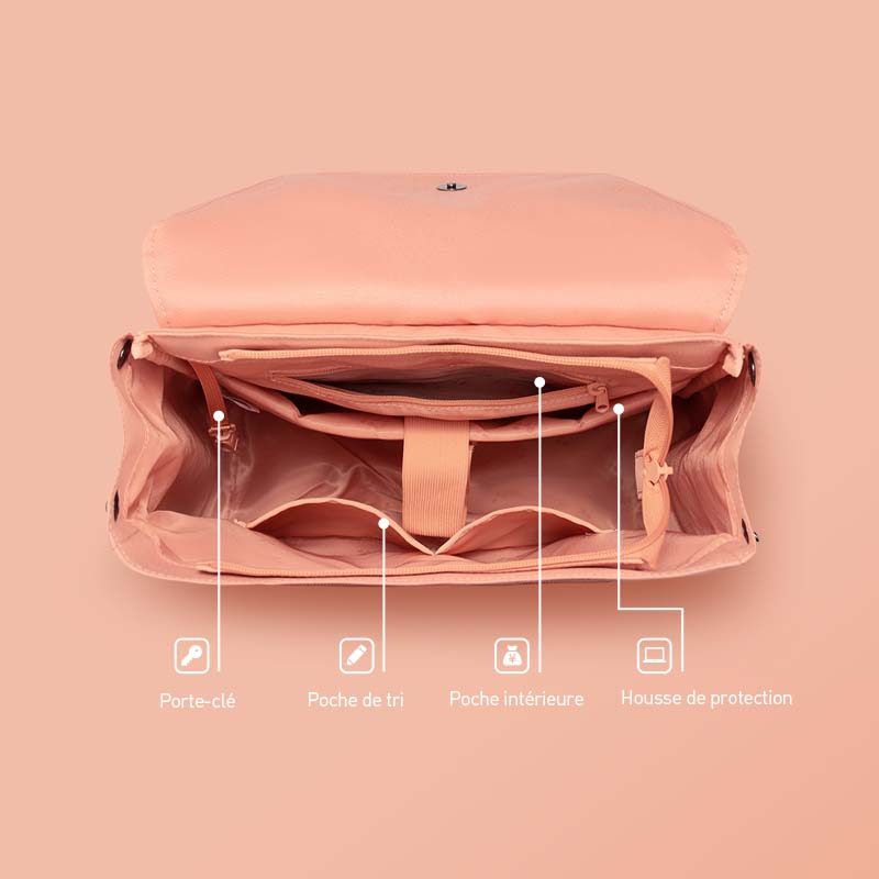Le MaH Young Rose Glacier est un modèle d'organisation. Il dispose de plusieurs compartiments internes de différentes tailles, parfaitement adaptés pour un ordinateur, une tablette, des livres, des lunettes, des clés et tous vos objets du quotidien.