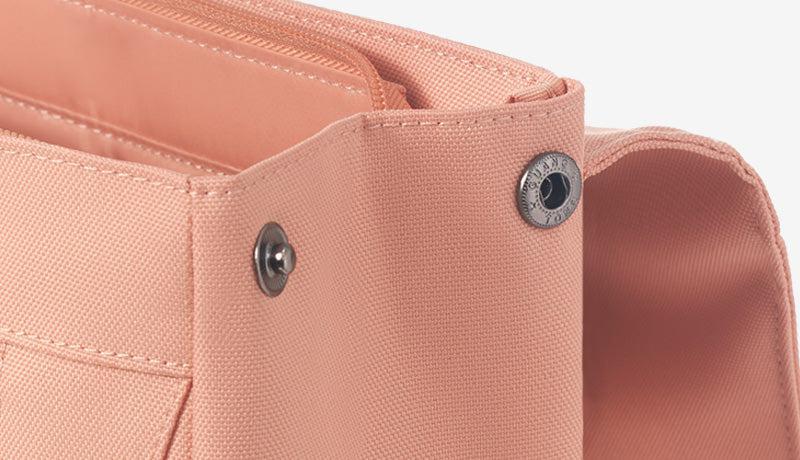 Outre la fermeture Éclair YKK, le MaH Young Duo est équipé de deux boutons-pressions métalliques sur chaque côté du sac, renforçant ainsi sa sécurité.